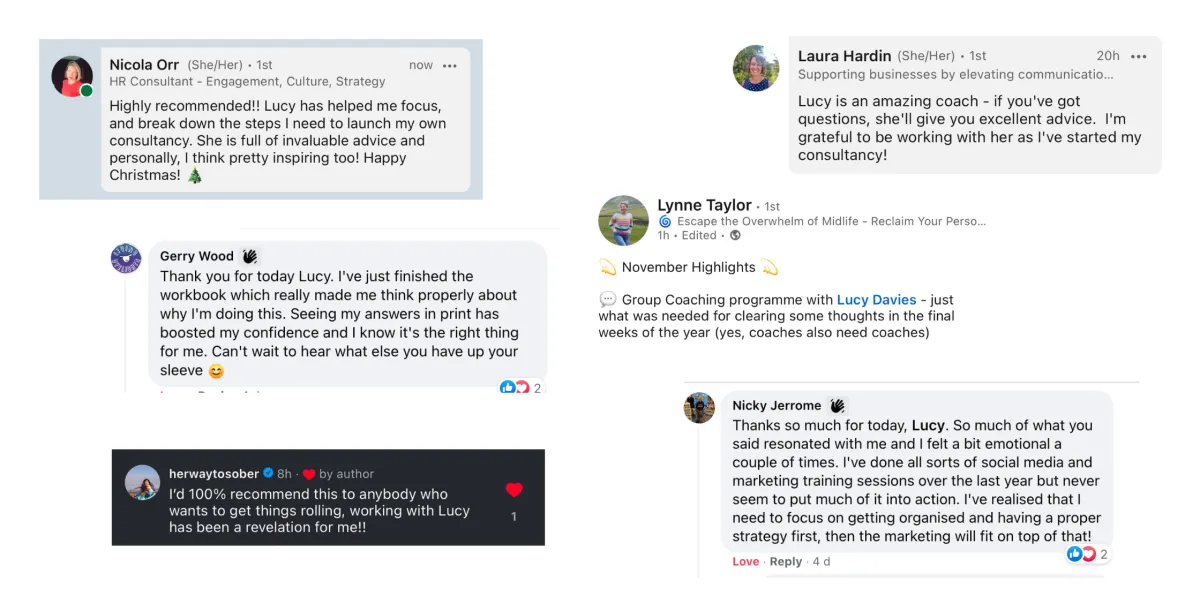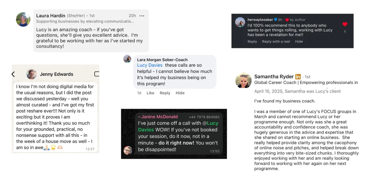 "Working with Lucy has been absolutely incredible. She's been key in helping me understand the link between my personal areas for growth and the challenges in my business growth. I'd 100% recommend this to anybody who wants to get things rolling, working with Lucy has been a revelation!"